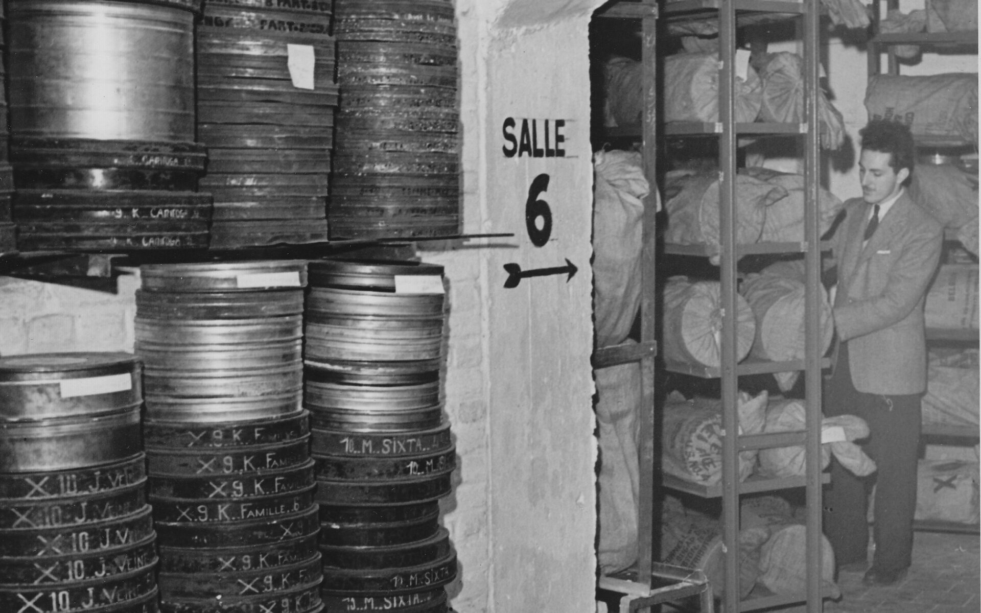 A l’origine, la Cinémathèque Royale de Belgique disposait de plusieurs dépôts un peu partout dans Bruxelles, aménagés dans des lieux souterrains, par exemple sous la place du Luxembourg ou Rue des Ursulines, sous l’ancienne gare des Brigittines, Avenue Poincaré ou encore Galerie Ravenstein. Aujourd’hui, la collection film est divisée et répartie dans trois bâtiments : deux à Bruxelles, où se trouve la majeure partie de la collection, répartie d’une part dans un bâtiment qui servait autrefois de garage automobile et d’autre part, dans une ancienne usine de cigarettes. Pour les copies nitrates, extrêmement dangereuses car inflammables, et qui ne peuvent donc être conservées en zone habitable, CINEMATEK dispose d’un troisième dépôt dans la province de Namur, bien en sécurité dans un ancien bunker de l’armée belge. Dans ces dépôts sont conservées quelque 260.000 copies de 80.000 films dans des conditions précises : évidemment à l’abri de la lumière, de l’air et de la poussière mais également maintenues à des températures précises et un degré d’humidité relative scrupuleusement contrôlé.